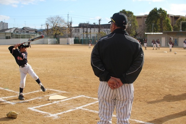 バッティングを見守る後ろ姿に風格が漂っていました。