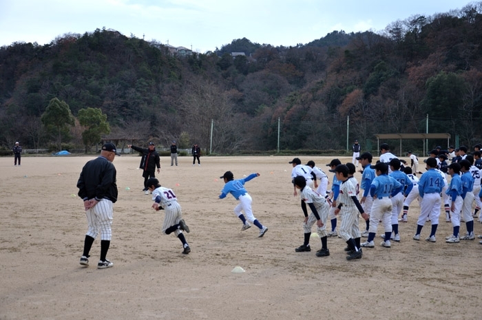 編集局の東です。毎年恒例の三菱自動車親子野球教室が今年は神戸市北区にあります「天王ダムスポーツガーデン野球場」で行いました。約80人の少年野球選手たちが参加をしていただきました。寒い中ほんとうにありがとうございました。父兄の方やチーム関係者の方を含めますと150人がイベントを盛り上げてくれました。