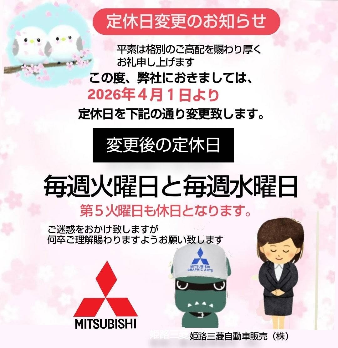 4月1日より、定休日変更のご案内🌸