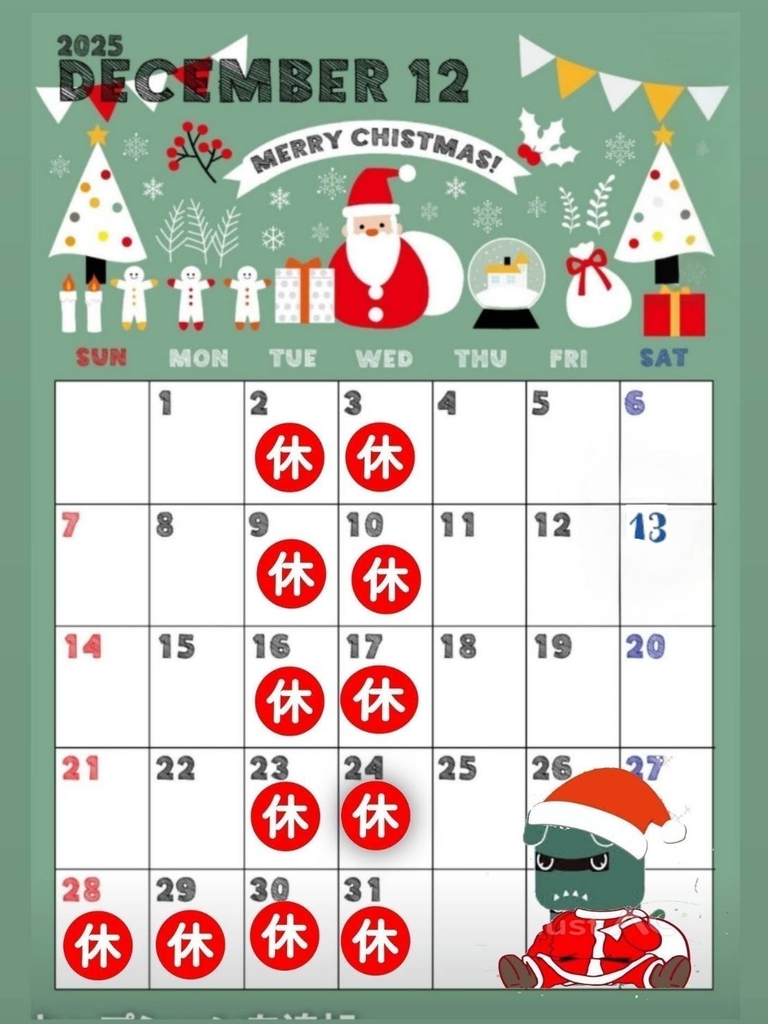 12月定休日のお知らせです📅