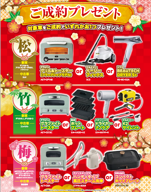 初売り期間中、ご成約頂いたお客様は対象車別に