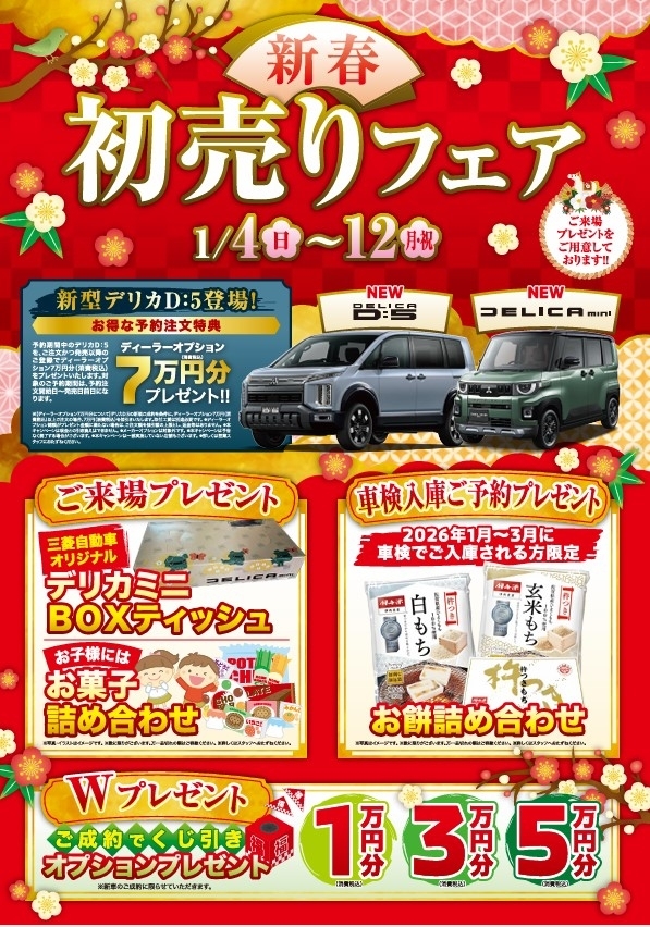 新型デリカD:5お得な予約注文特典は本日1/8ご成約分まで!!