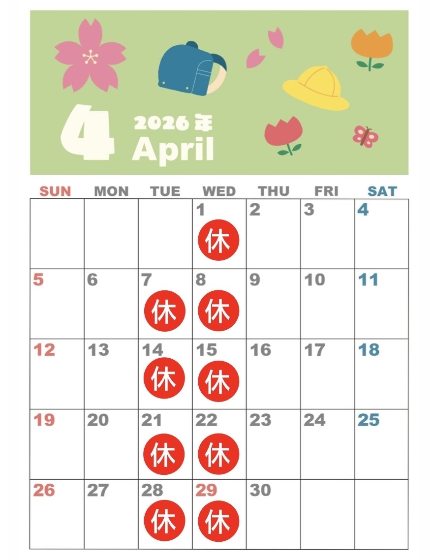 4月の定休日はこちら👇