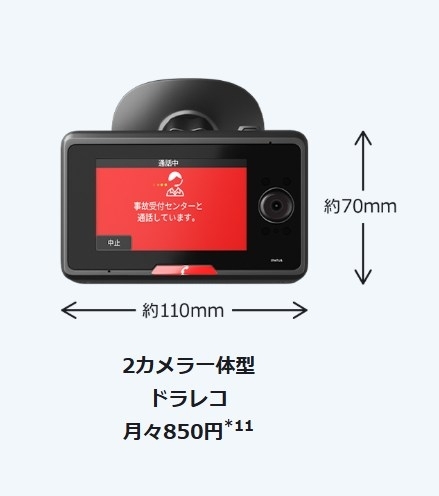 2カメラ一体型ドラレコ 月々850円