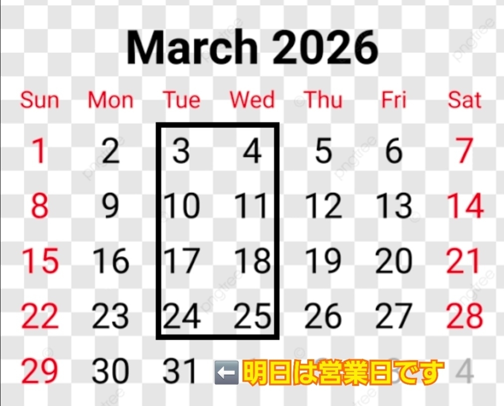 明日の第5火曜日は営業日となります😌
